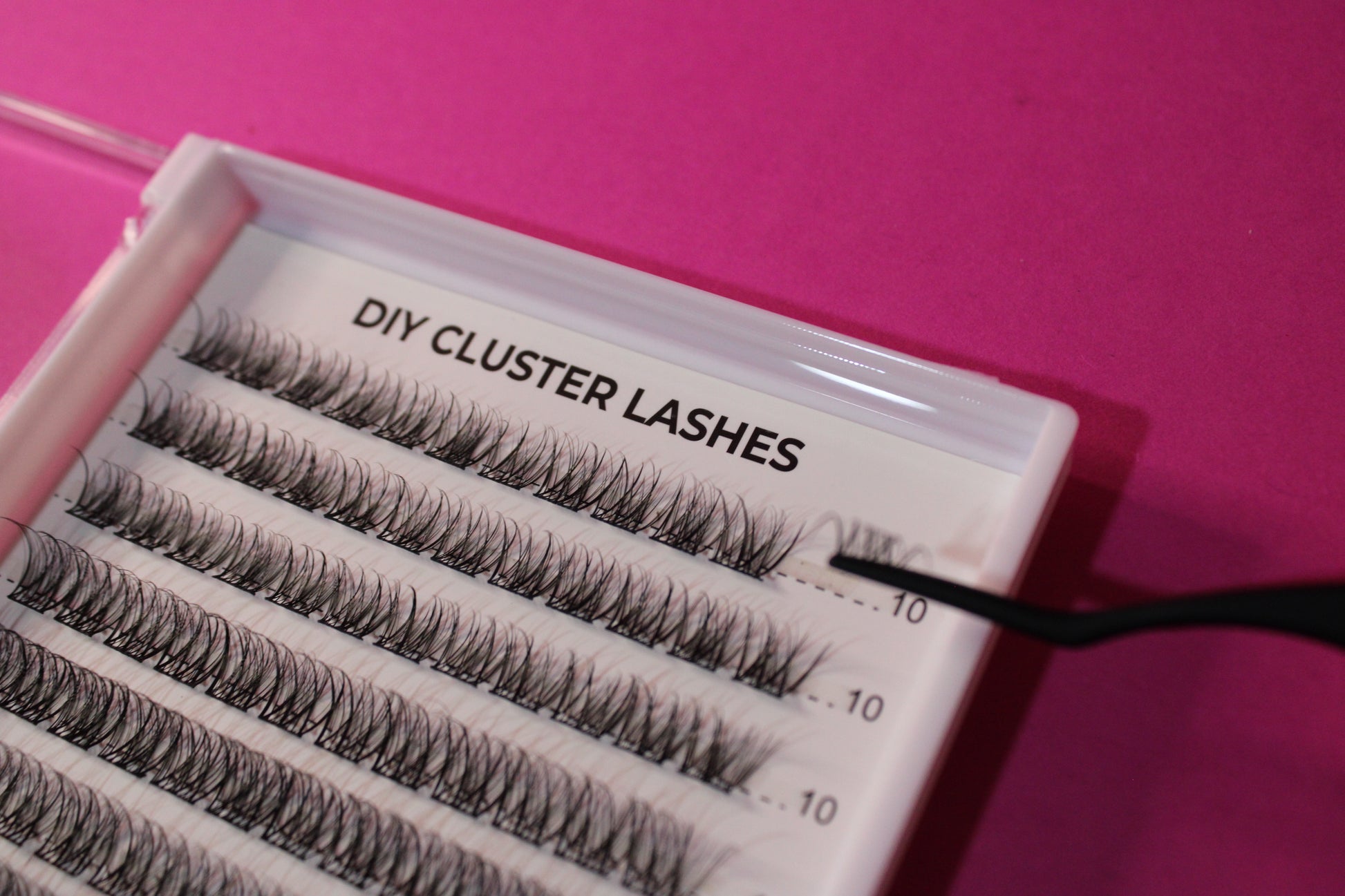 4. Drücken Sie mit der Pinzette die Wimpernbüschel 5 Sekunden lang zusammen mit Ihren Wimpern.